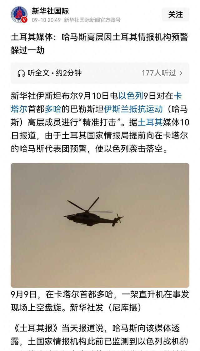 根据《土耳其报》得到的消息,是土耳其情报机构,监测到了以色列战机的异常机动跟飞行轨迹(主要侦测对象是空中加油机,而不是F35,因为F35的隐身性能,让土耳其无法侦测),随后,土耳其情报机构通知了在卡塔尔的“哈马斯”高级成员“有可能目标就是他们”,当时,这些人正在讨论美国跟以色列提出的停火协议条款,他们在收到信息后,开始迅速组织撤离。 在撤离的时候,这些哈马斯高级官员,已经意识到以色列情报机构盯上了他们,并且这些以色列摩萨德成员,可能就在自己身边。于是在撤离时,采取了金蝉脱壳的手段——让保镖替代自己,继续在会议室讨论。这使得以色列在开火前从情报人员那里得到信息有误,最终导致误判——这些人仍然在开会,没有离开。于是以色列高层果断下令开火。 从最终的损伤效果来看,也佐证了土耳其情报机构确实给哈马斯提供了消息——最终以色列这次精确打击,导致了6人死亡,但死亡的均非哈马斯高级官员,而是其保镖团队成员,其中,甚至包括一名卡塔尔内务部队的士兵以及一名哈马斯高级官员的儿子,这说明,当时即便是土耳其提供了情报,但时间也已经非常紧迫,哈马斯官员撤离时甚至来不及通知家人。 这次,不得不为狗中哈士奇国中土耳其点个赞。以色列现在在美国的支持下,几乎践踏了所有的国际法、交战规则、甚至包括最低线的人类文明……这一点,就连西方国家自己都看不下去了——英国,法国,德国……都纷纷站出来指责以色列,甚至制裁以色列。只有美国特朗普政府在那里装鸵鸟:我啥也不知道,我真的啥也不知道……